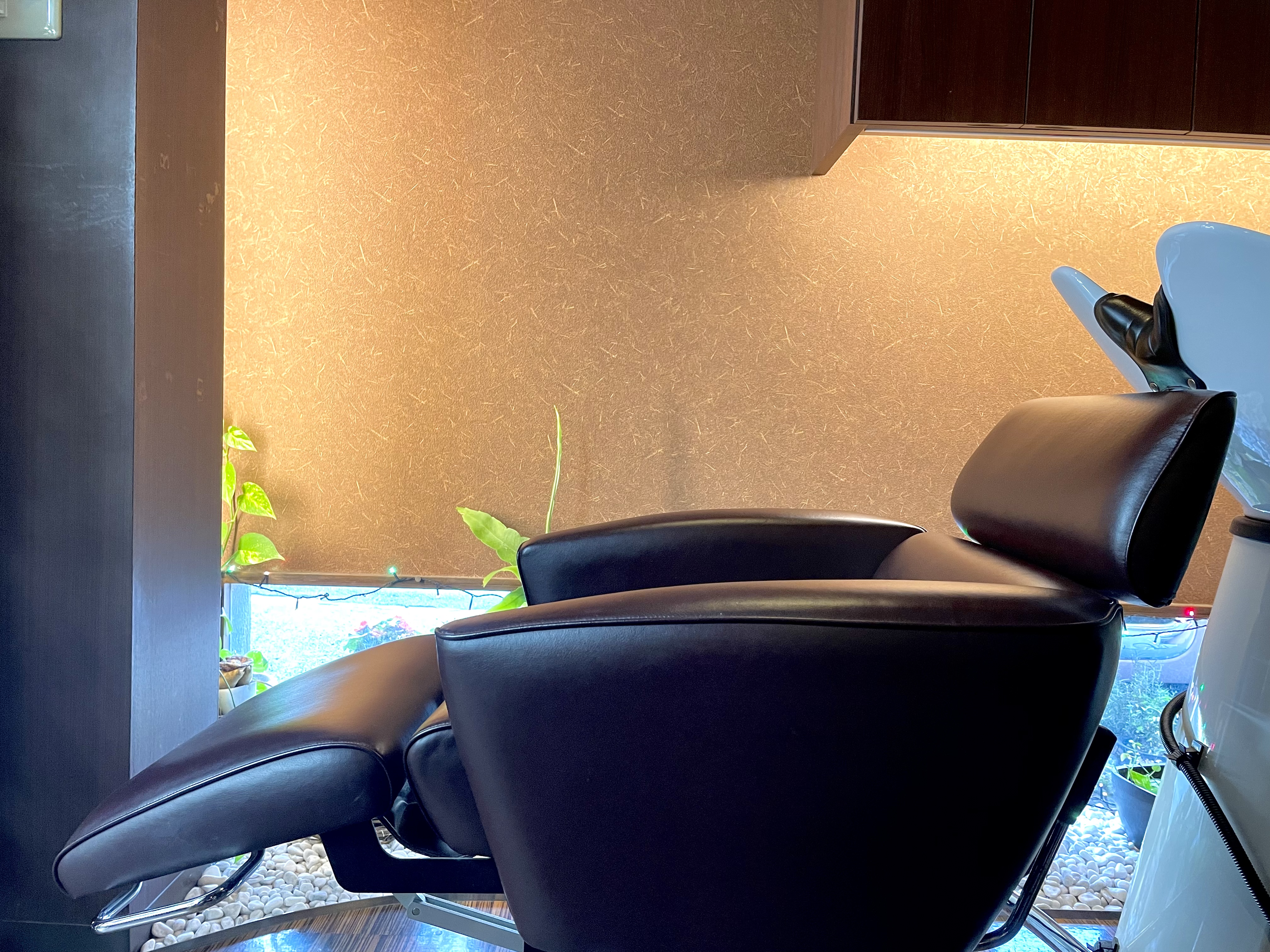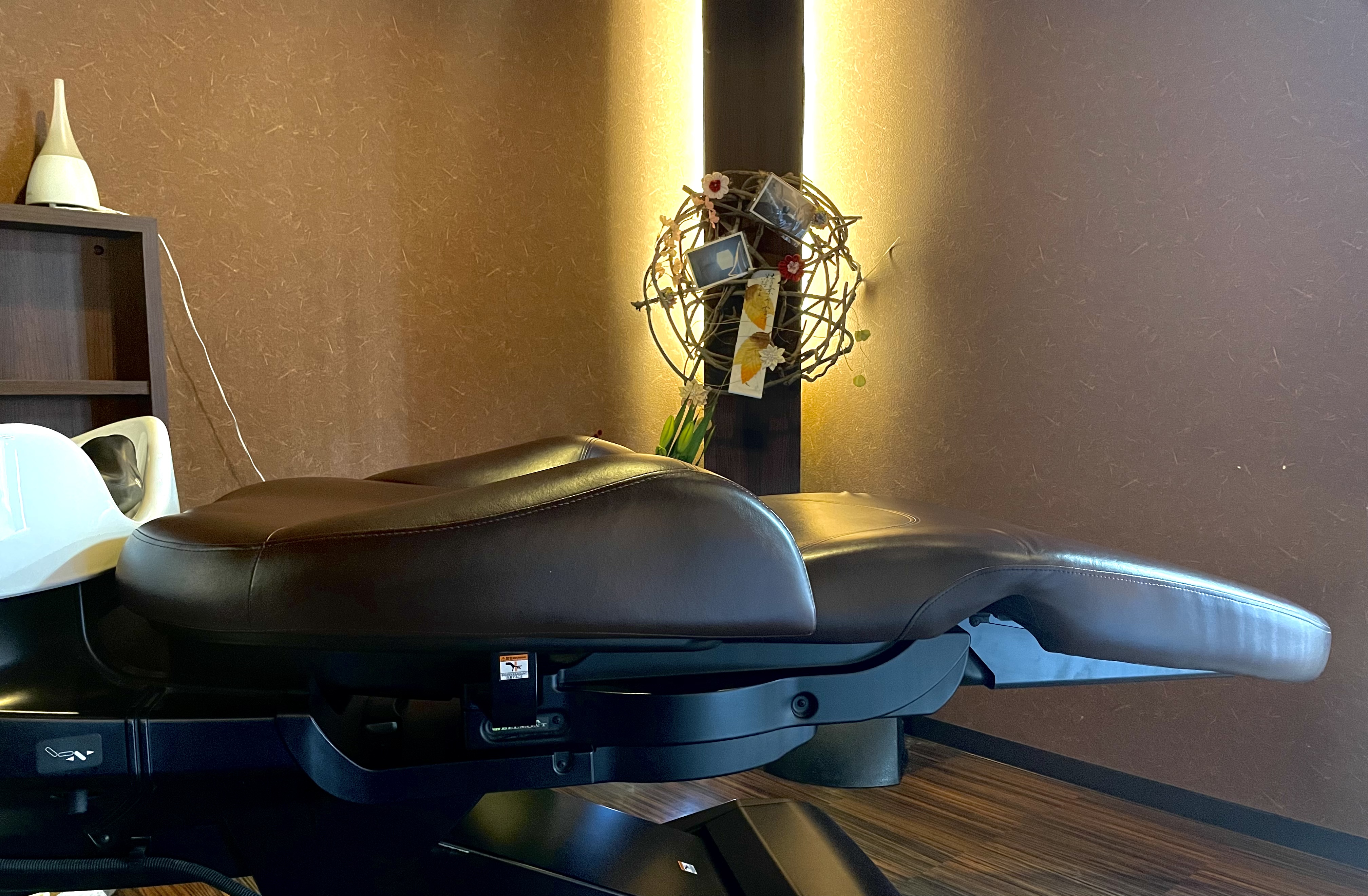 身体に快適な、人間工学に基づいたリクライニングタイプのシャンプー台で施術させていただいています。