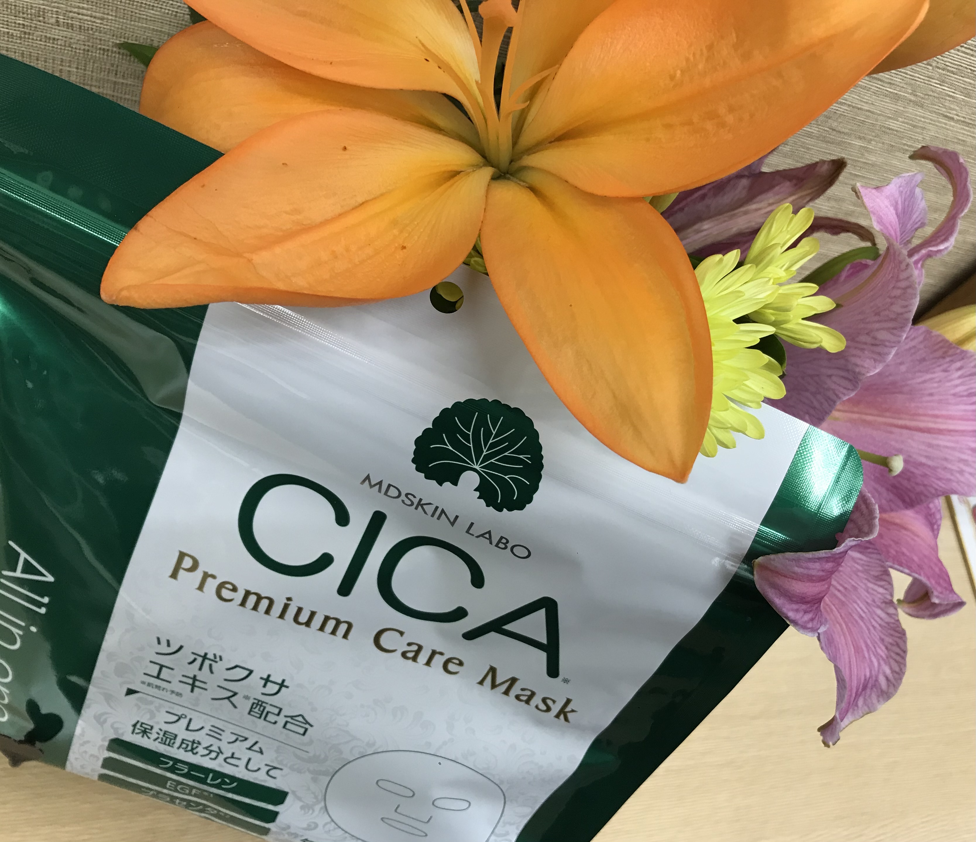 昨日お風呂あがりにわたしの ☆CICAマスク☆を見つけてしてました。