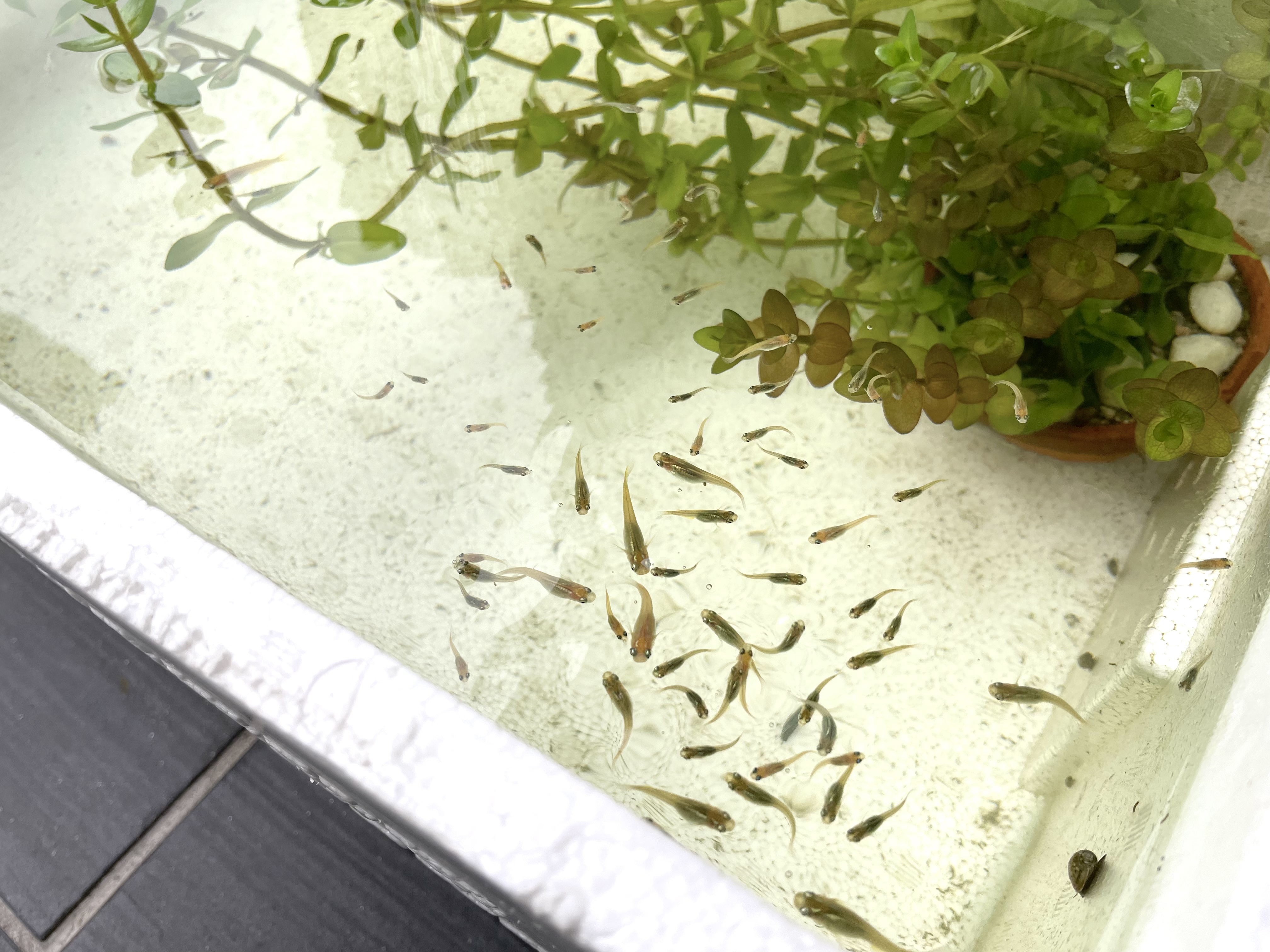 6月の終わりにみほちゃんのところからわが家に来たメダカたち。